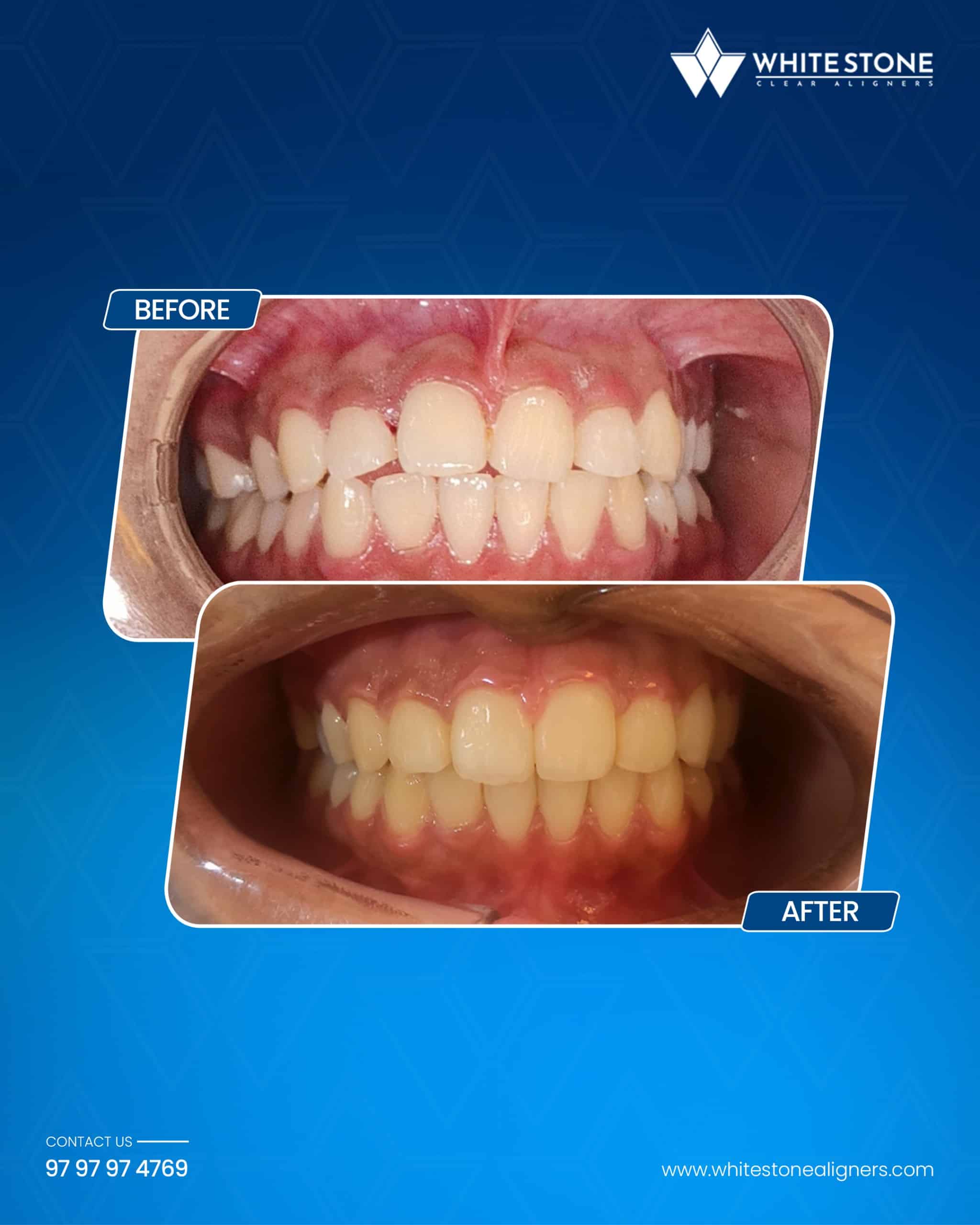 For severe cases, additional treatment time may be needed, but the results are consistently excellent. Your White Stone provider will assess whether clear aligners are suitable for your specific situation during your free consultation.
