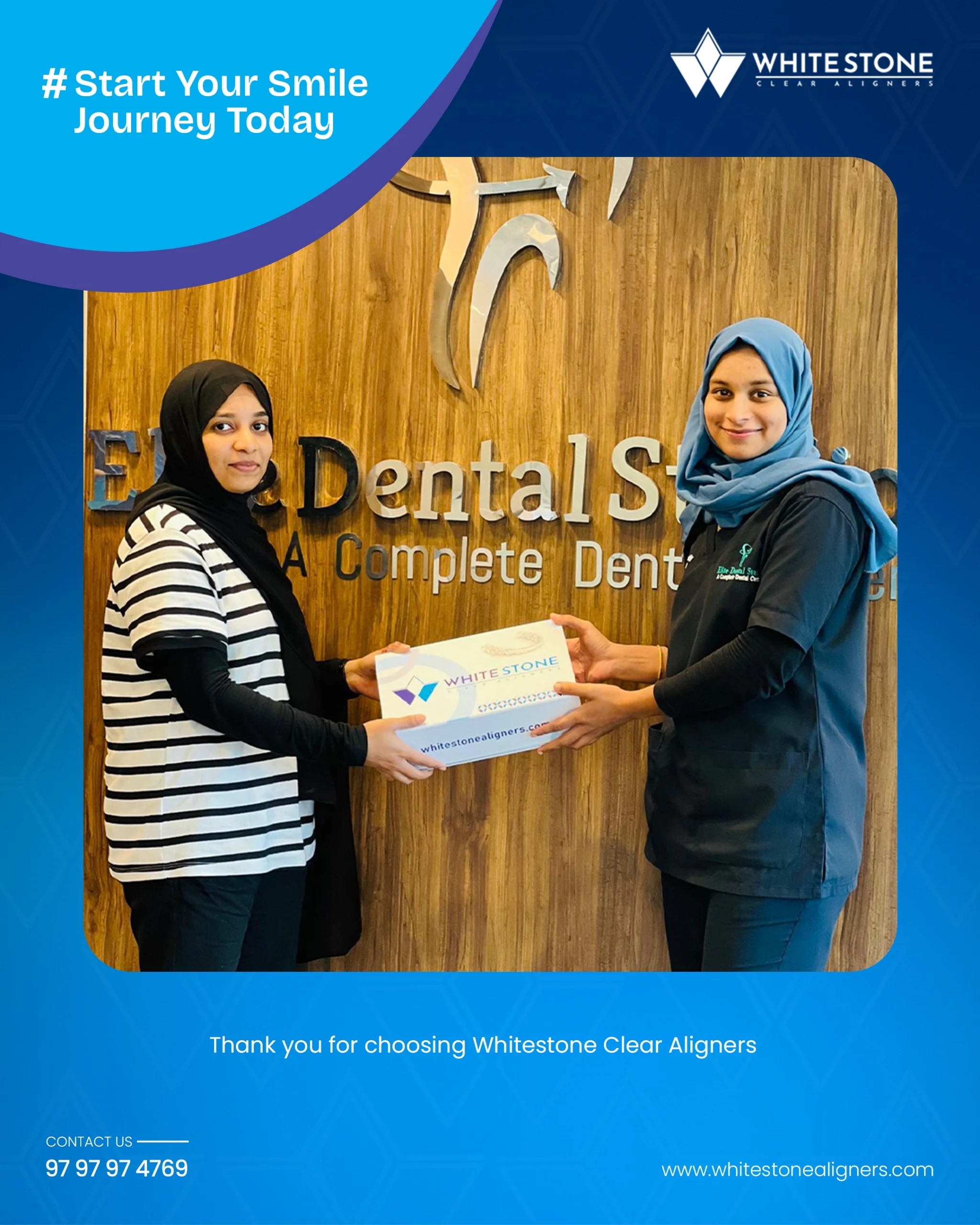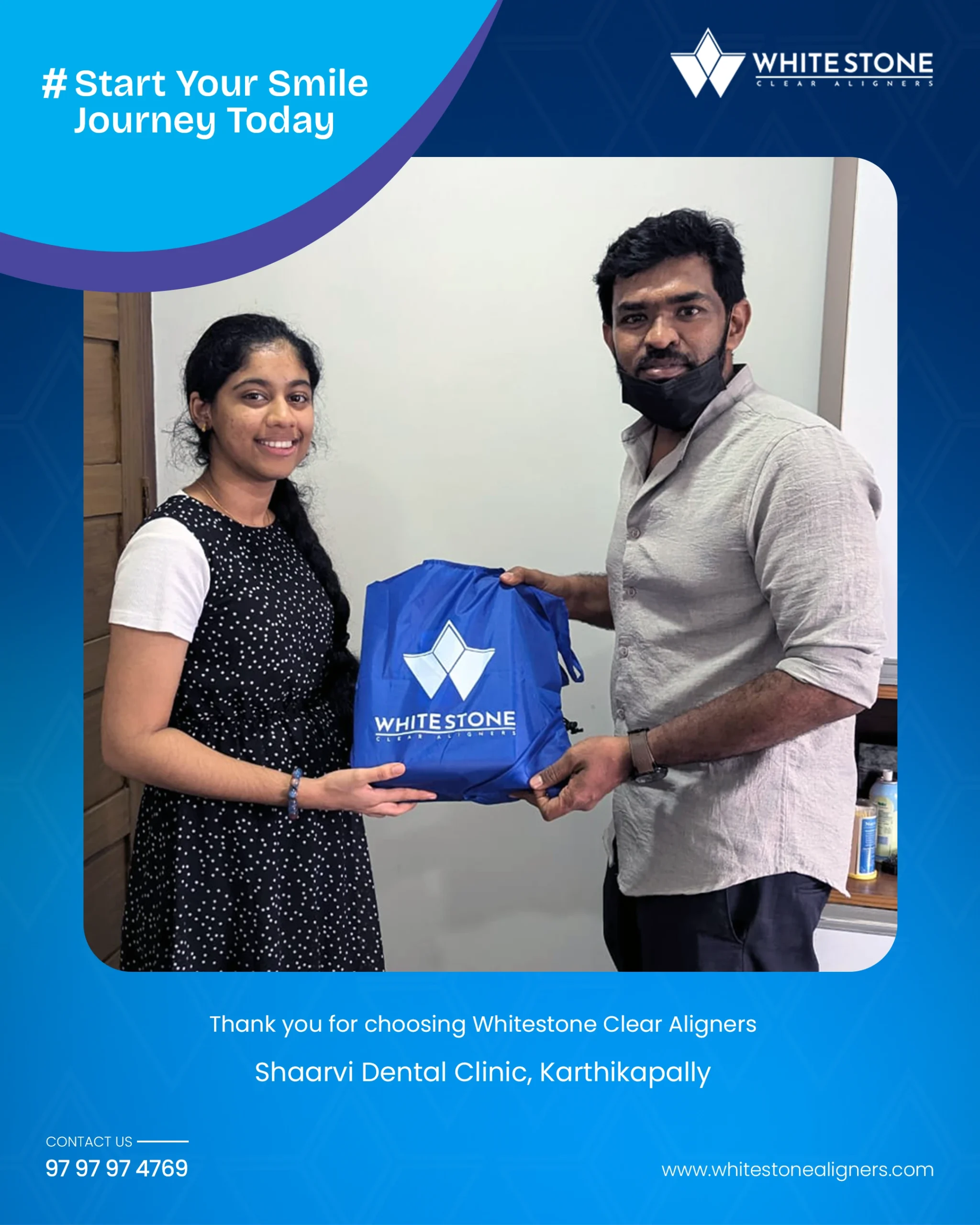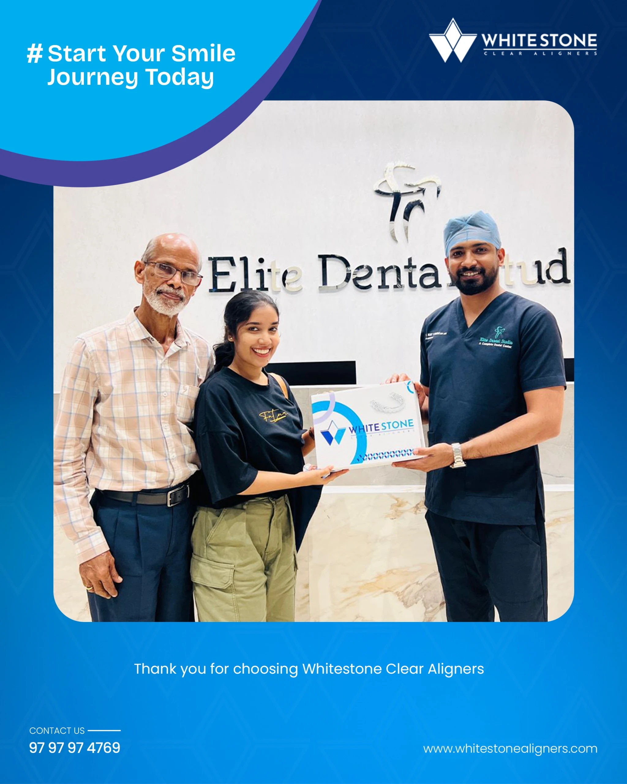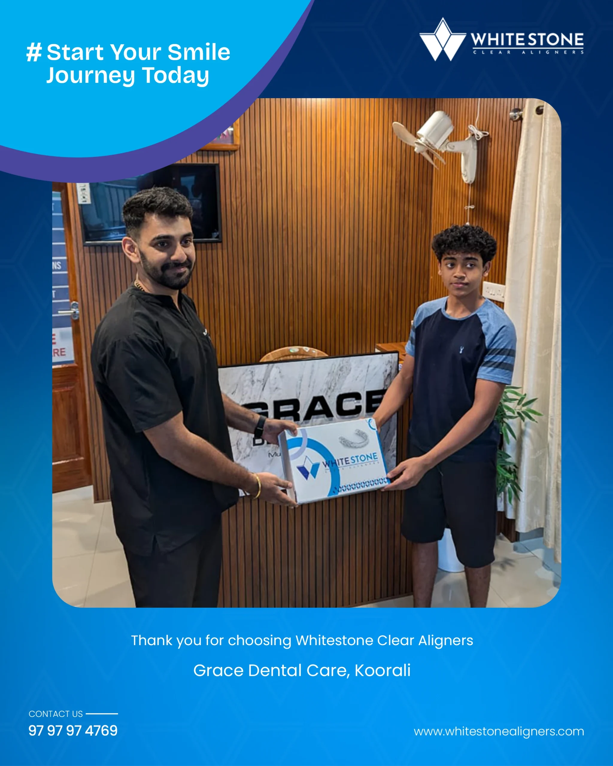 Whitestone aligners are available at dental clinics throughout Kerala. You can also reach out to us directly via our website or social media, or contact us at 9797974769.