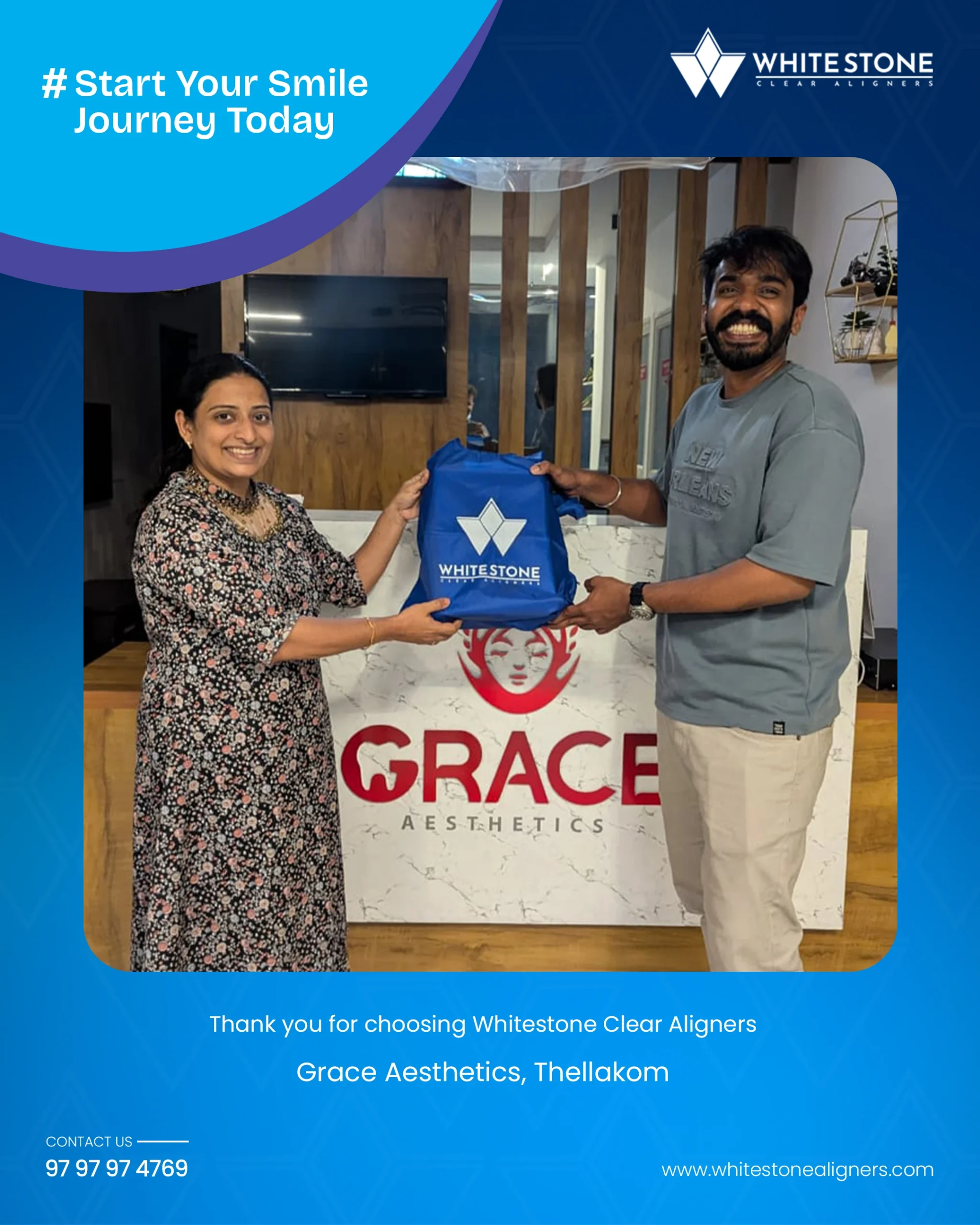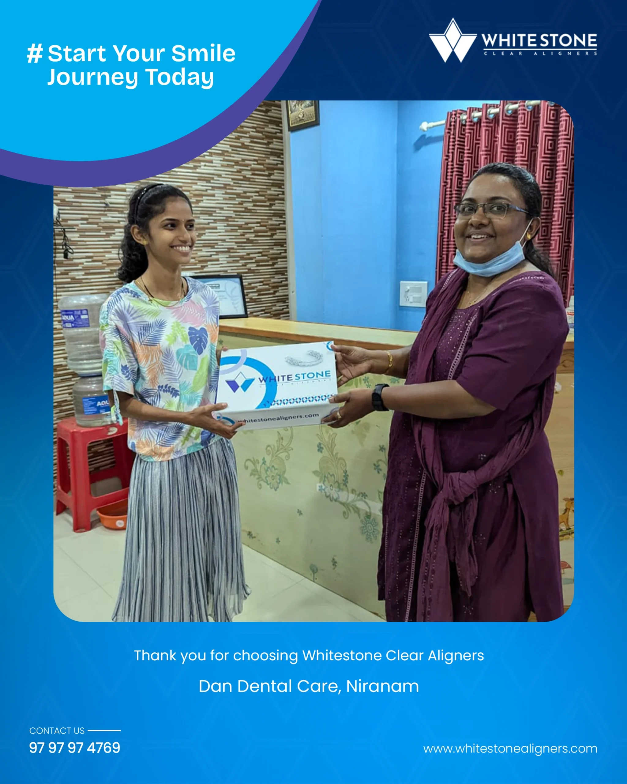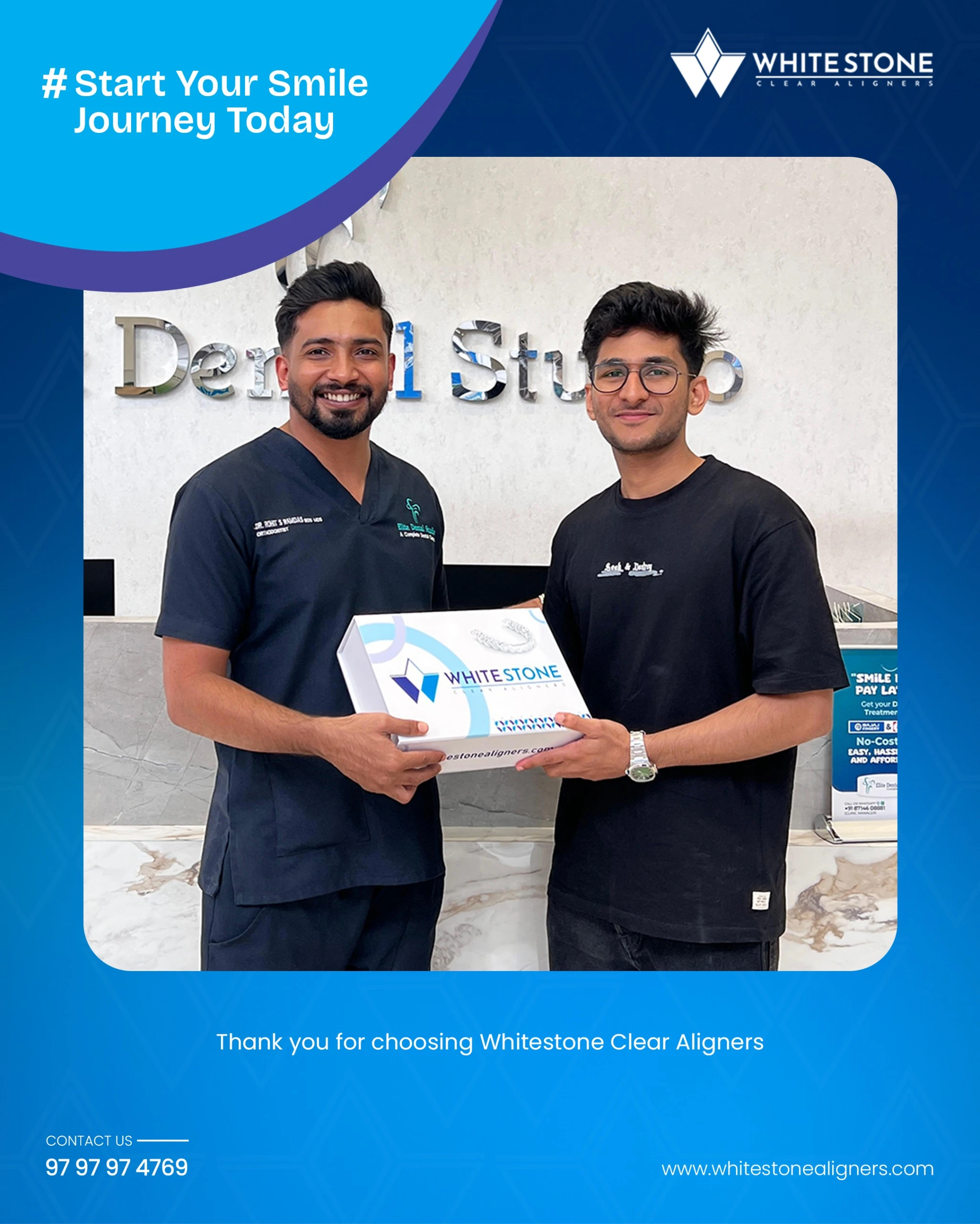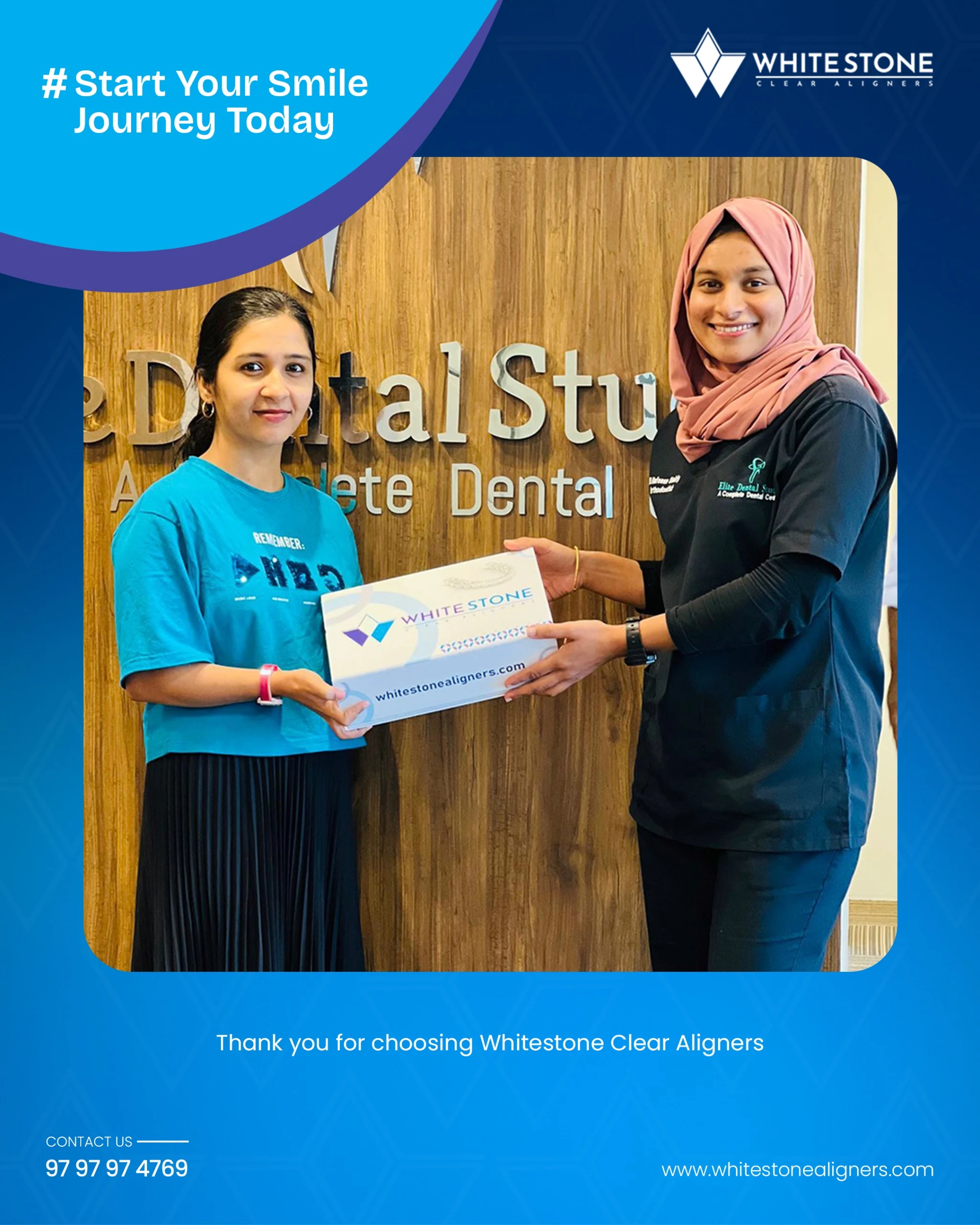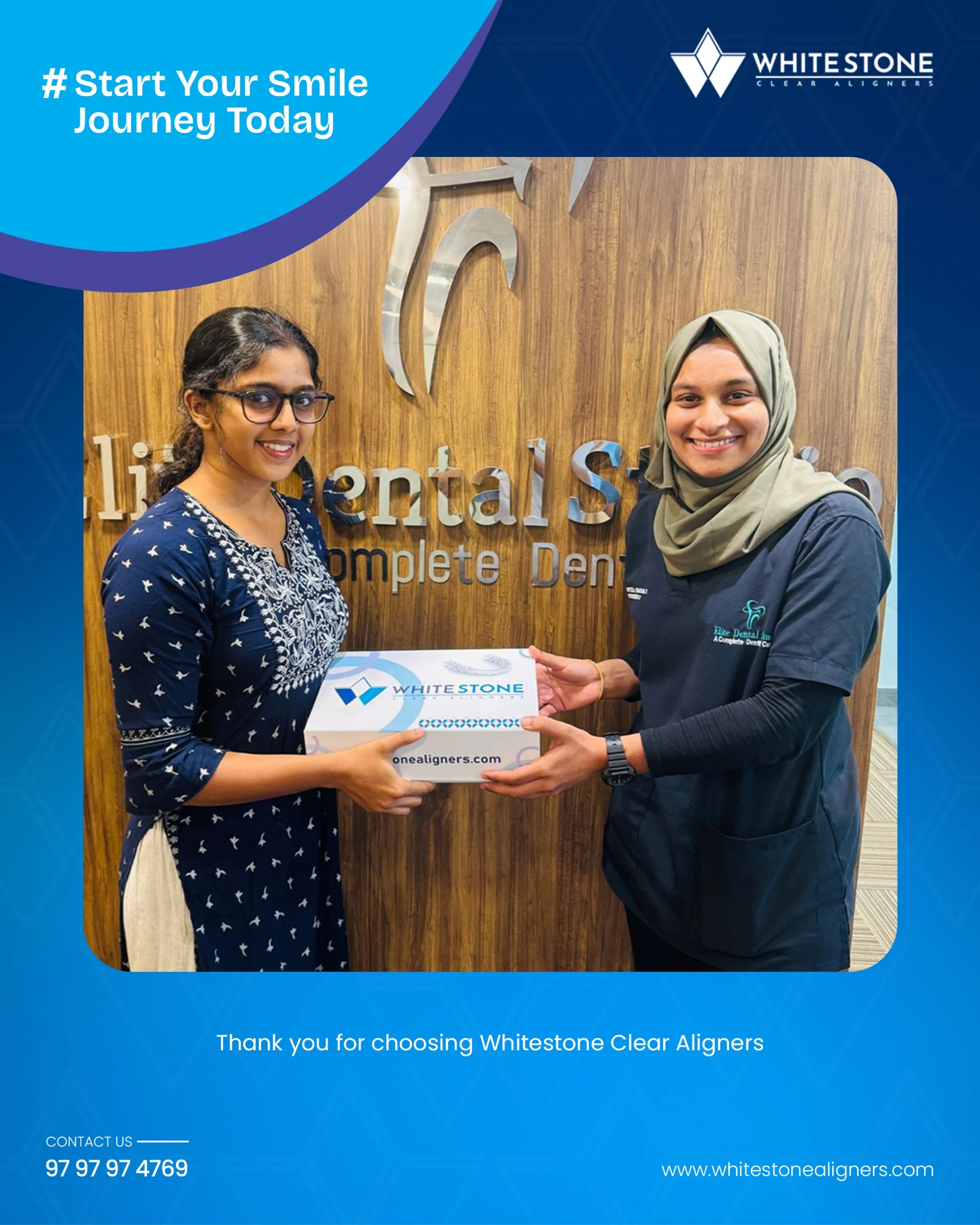 Whitestone aligners are available at dental clinics throughout Kerala. You can also reach out to us directly via our website or social media, or contact us at 9797974769.