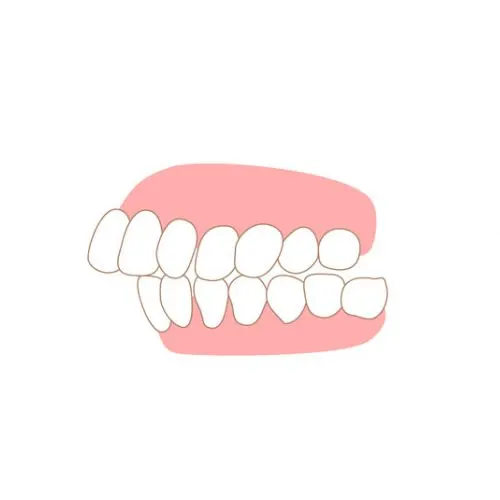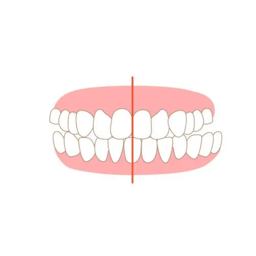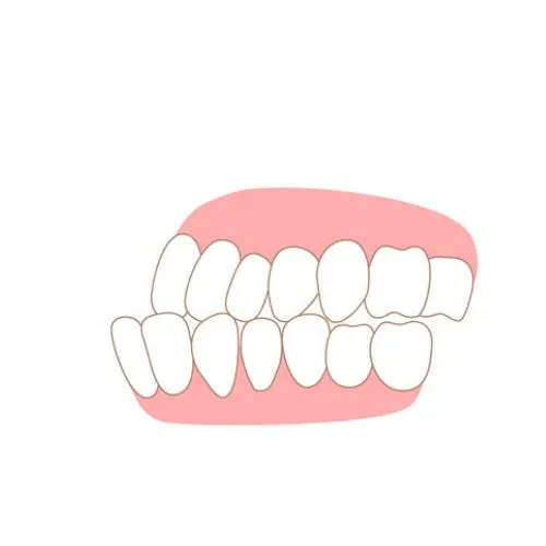 Lower front teeth sit ahead of upper front teeth when biting.