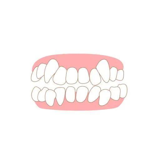 Teeth overlap from limited jaw space, causing misalignment and potential oral issues.